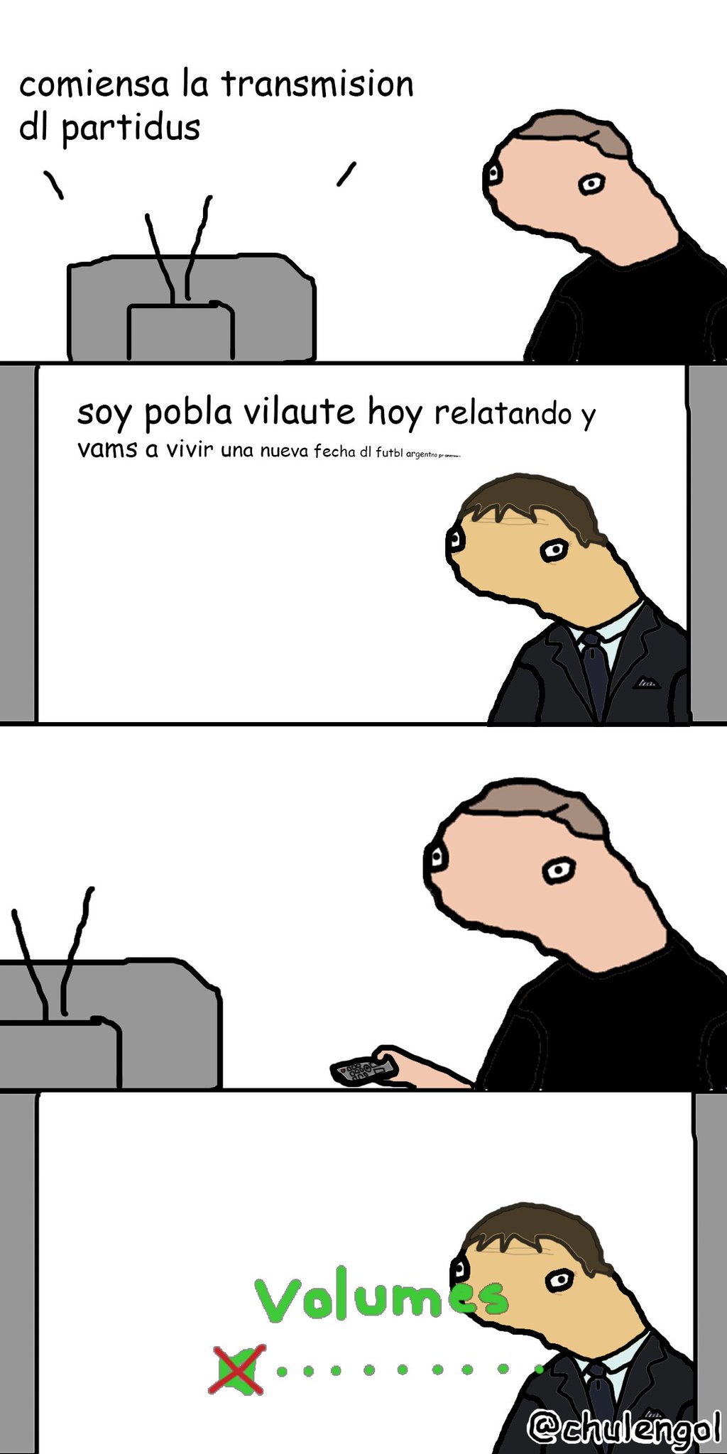 Pesima transmisión de Telefe, cortándose el sonido, ese zumbido de mierda, dejame de joder, lo bueno es que no me tuve que fumar a un bostero relatando