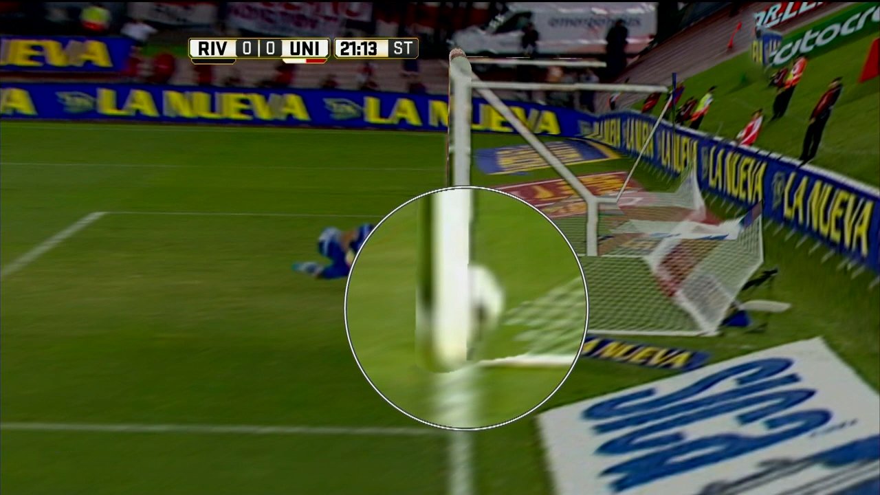 en la toma que pusieron de frente la frenaron cuando toca el pasto, y ahí se ve una raya verde de cesped entre la bocha y la línea, osea que entró toda, obviamente esa toma la pusieron una sola vez, y después repetían la del costado que no sirve porque el palo tapa todo…