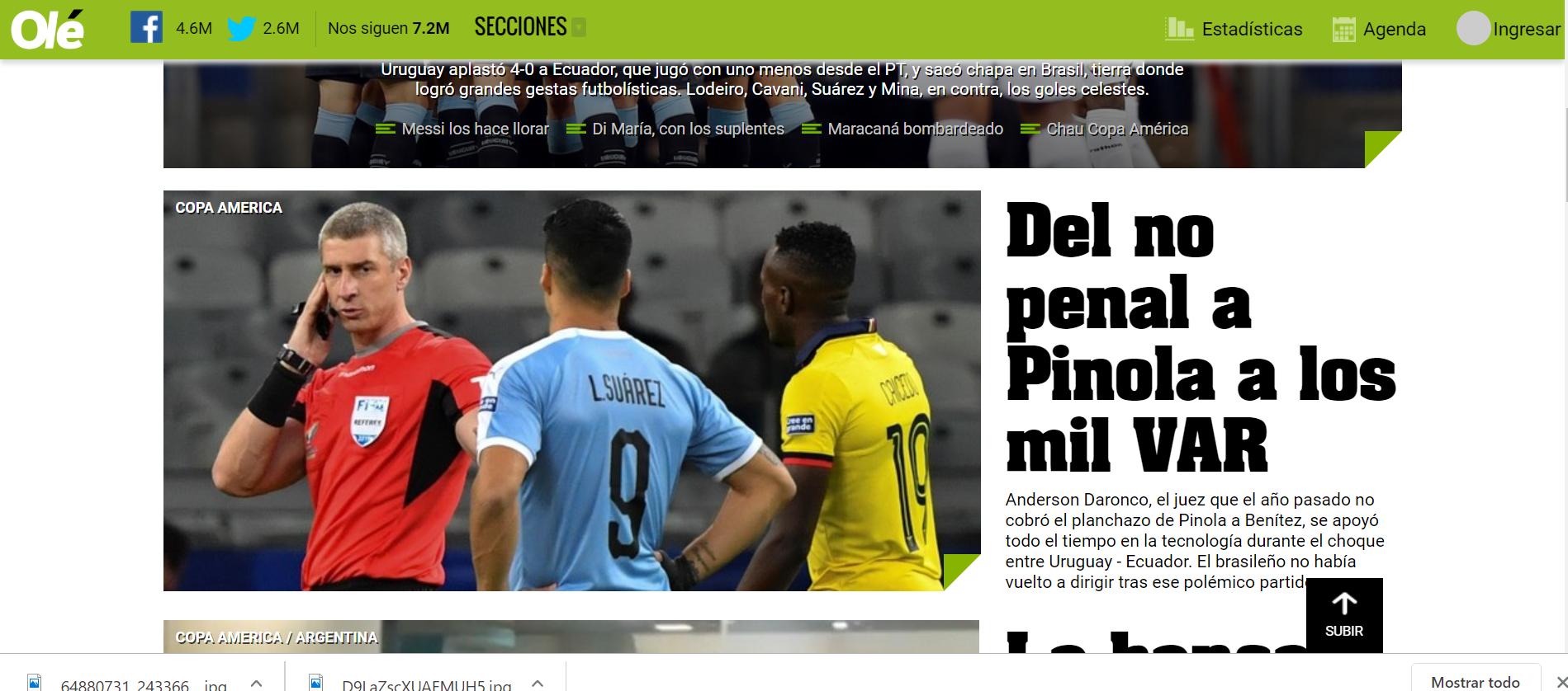 Juegan Uruguay - Ecuador, de qué hablan comentarista y relator? De que era penal de Pinola. La tienen adentro, chicos.